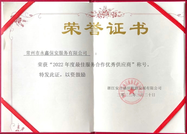2022年度优秀供应商证书