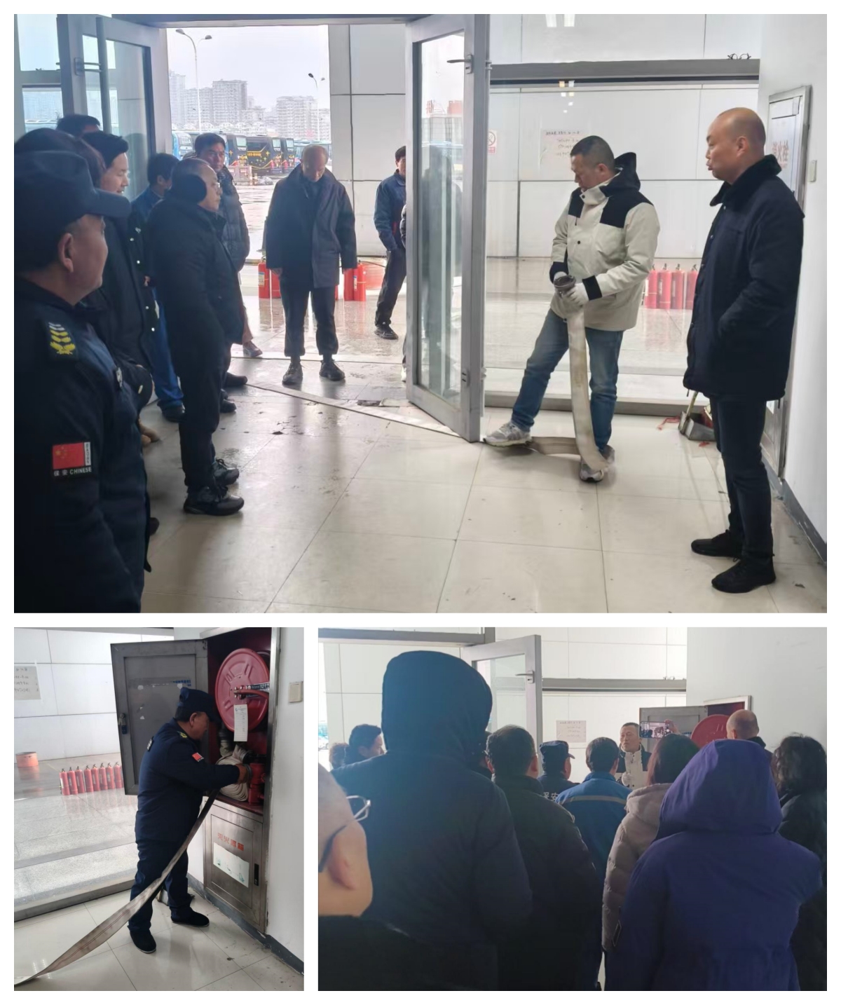 (上图:汽车客运站春节前消防模拟演练)